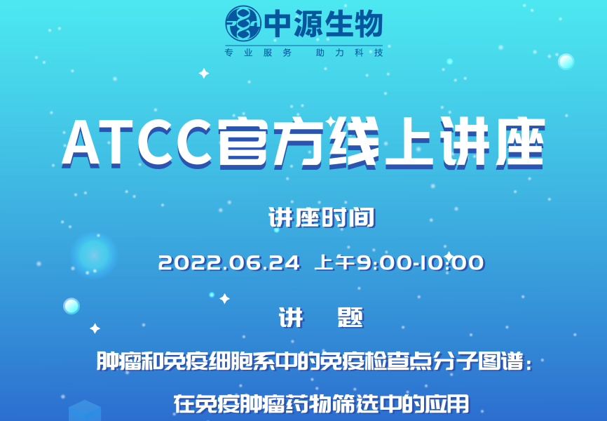 ATCC网络研讨会来啦!尊敬的ATCC用户:您好!9U(中国)一站式服务平台诚挚的邀请您参加由美国ATCC官方和北京9U平台联合举办的有关"肿瘤和免疫细胞系中的免疫检查点分子图谱:在免疫肿瘤药物筛选中的应用"网络研讨会。2022-06-24 15:56:00.0