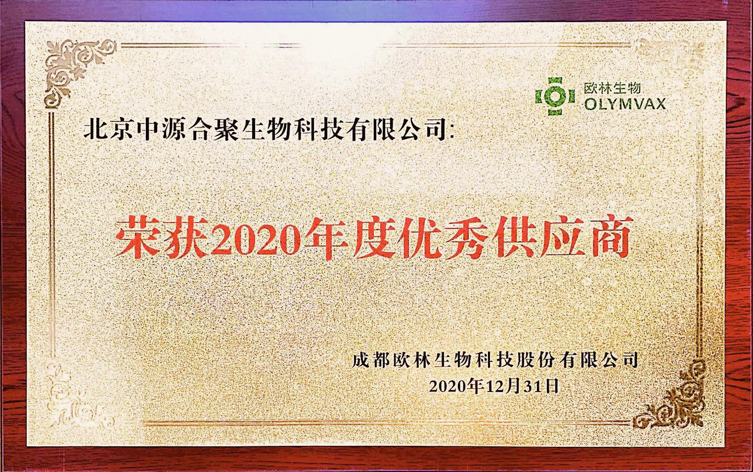热烈祝贺中源公司喜获欧林生物2020年度优秀供应商。2021-03-09 09:23:00.0