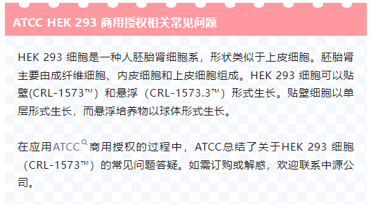 在应用ATCC商用授权的过程中,ATCC总结了关于HEK 293 细胞(CRL-1573™)的常见问题答疑。如需订购或解惑,欢迎联系中源公司。2024-09-26 15:58:00.0