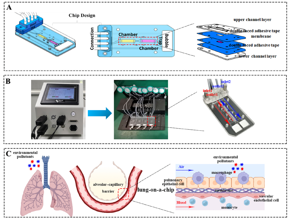 本研究利用膜式芯片和流控系统构建了一种肺芯片模型,旨在重现肺泡-毛细血管屏障的关键结构,通过引入免疫系统可以更真实地模拟体内的微环境,提高了免疫反应的效果和敏感性。2024-09-19 16:23:00.0