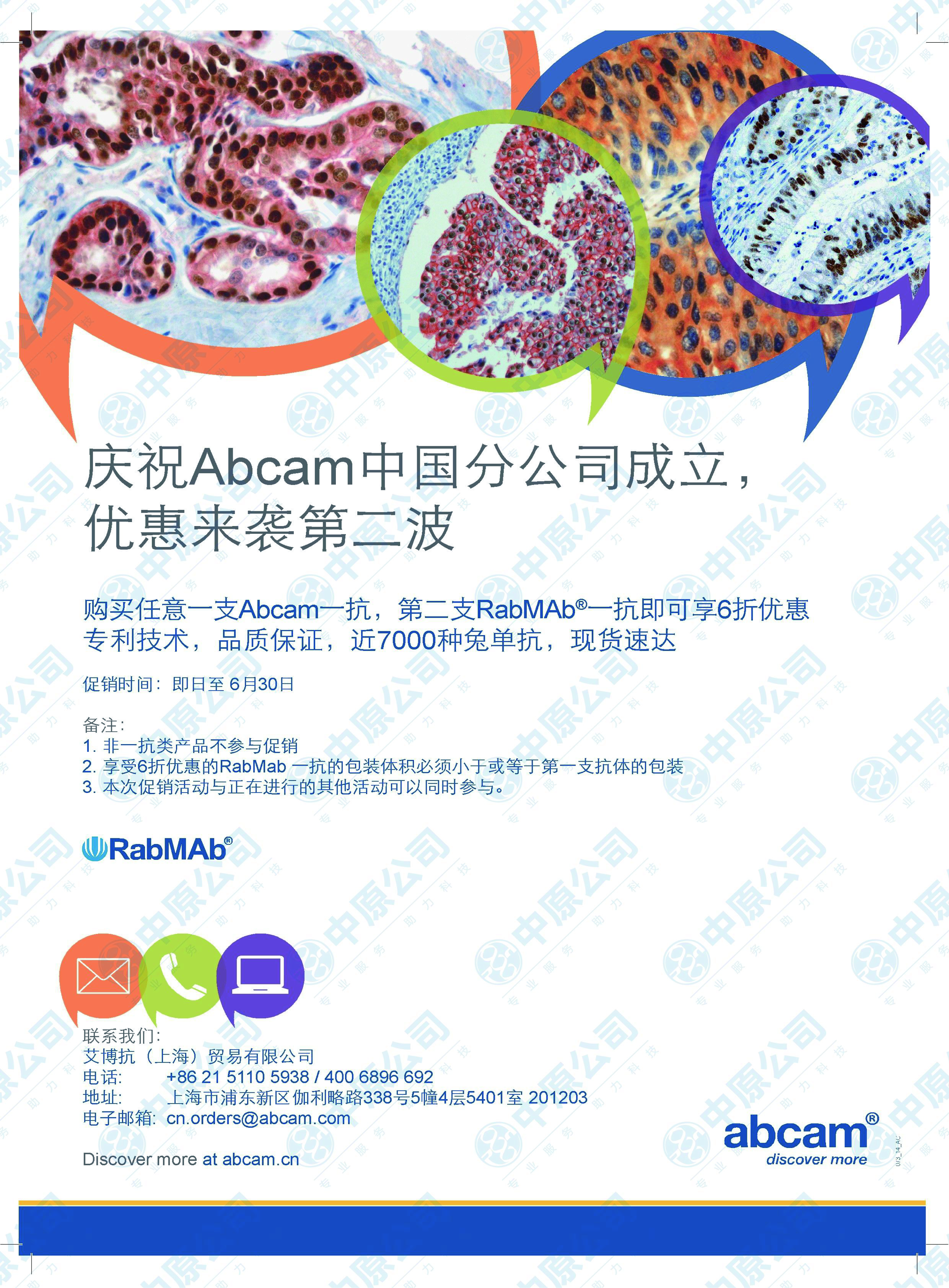 庆祝Abcam中国分公司成立,优惠第二波~!!! 2014-03-21 12:29:00.0