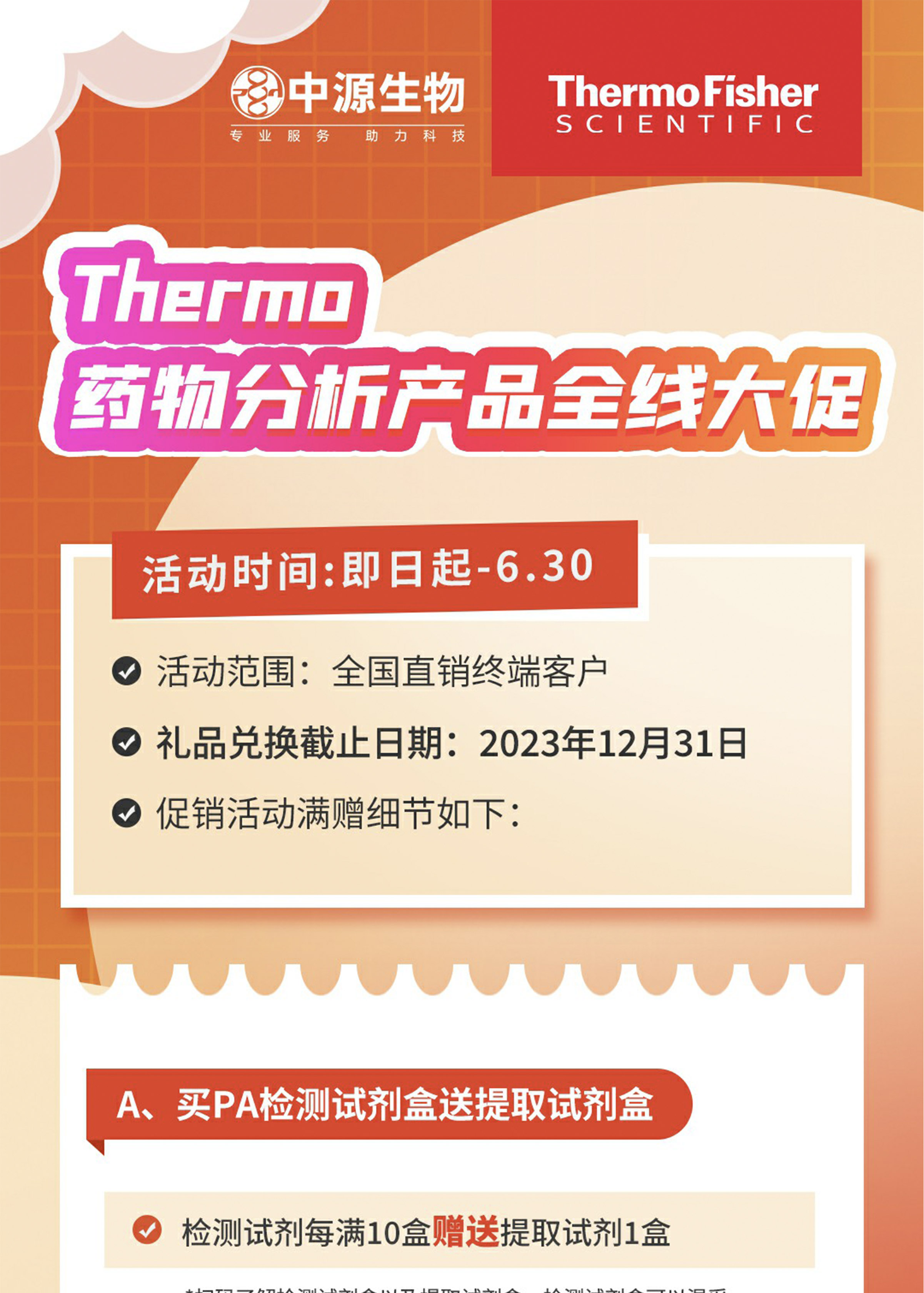助力中国研发,9U(中国)一站式服务平台从未停歇—— 即日起至2023年6月30日,Thermo药物分析(PA)产品全线促销活动开始啦! 本次促销分为三个活动,快来看看...2023-04-27 14:25:00.0