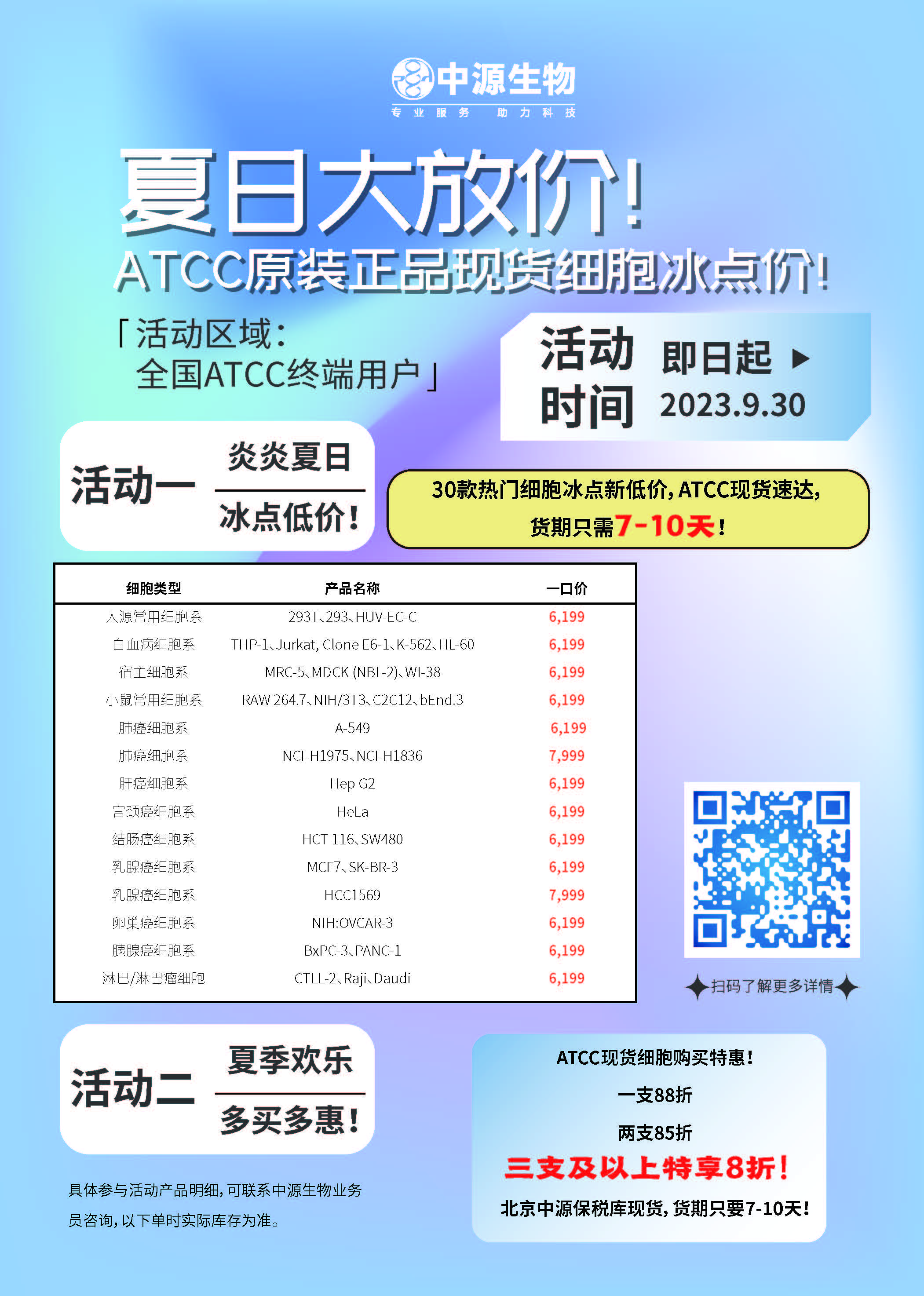 ATCC原装正品现货细胞冰点价 即日起~2023.9.30 全国ATCC终端用户2023-08-04 15:03:00.0