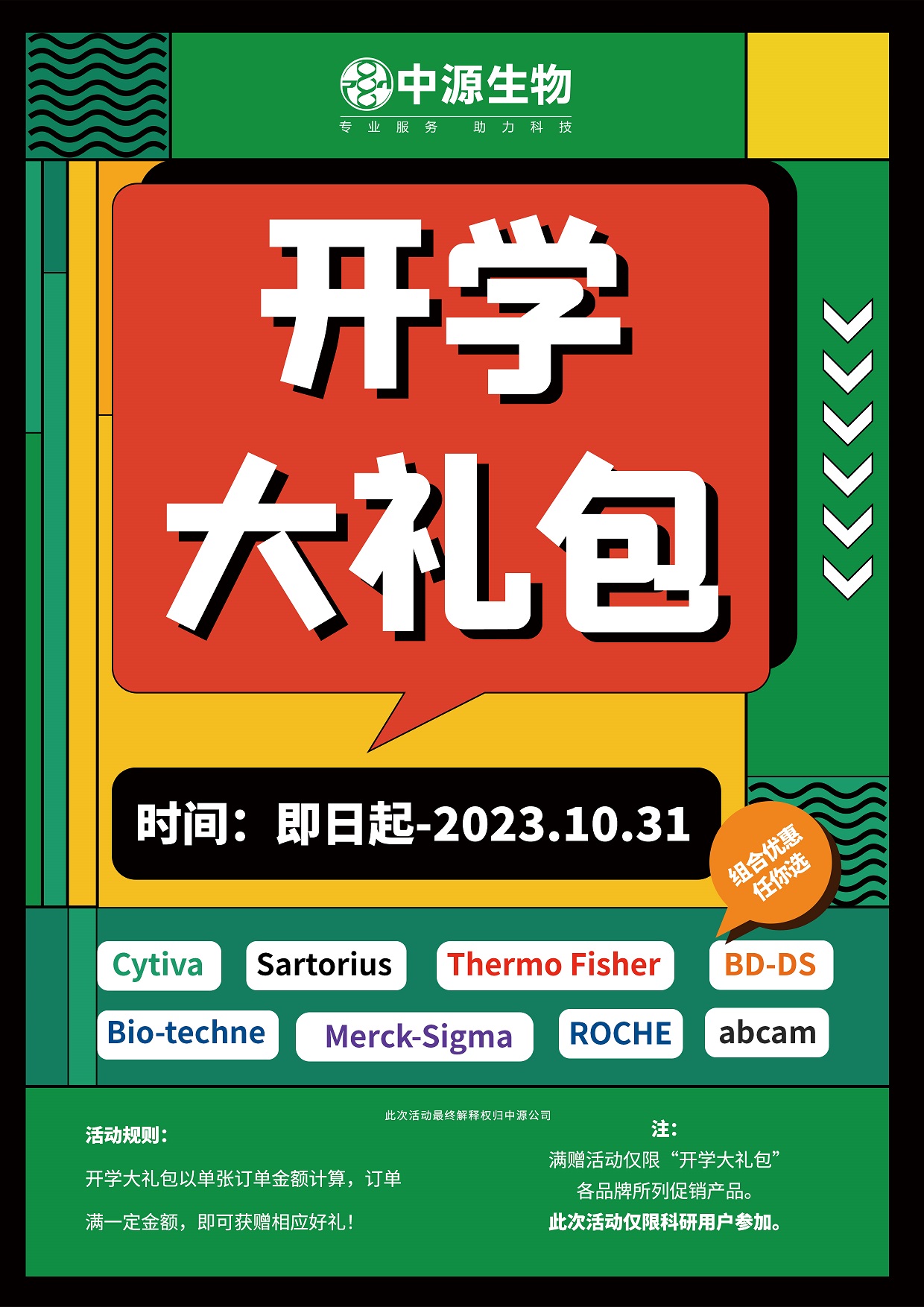 购买abcam 10ul以上规格抗体、试剂盒等产品(销售价6.5折以上)即0金额赠送1件 cytiva 10426981或17085401(二选一)产...2023-06-29 15:18:00.0