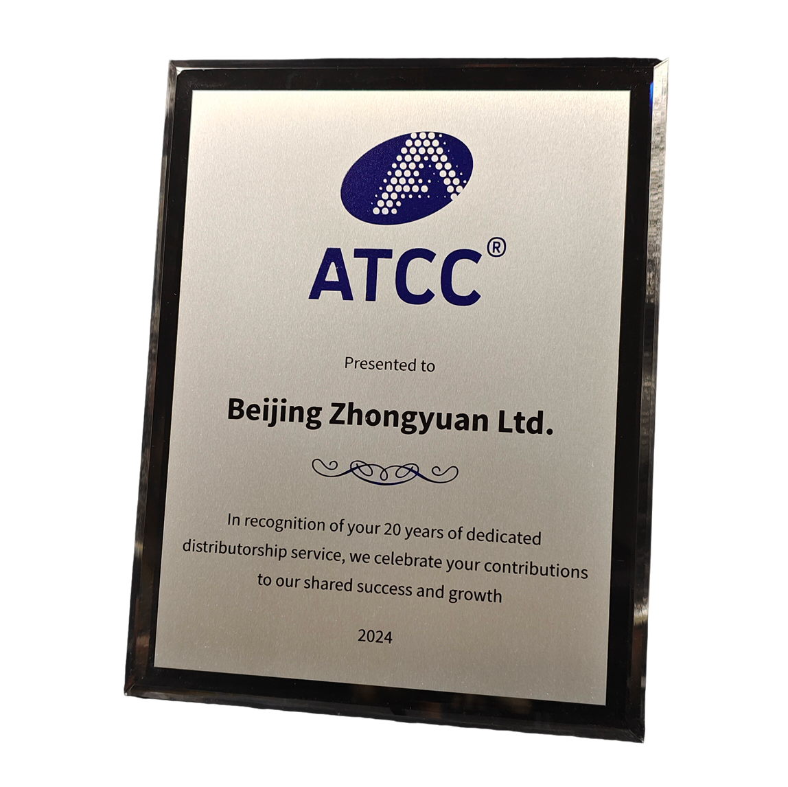 中源公司获ATCC合作二十载纪念奖牌