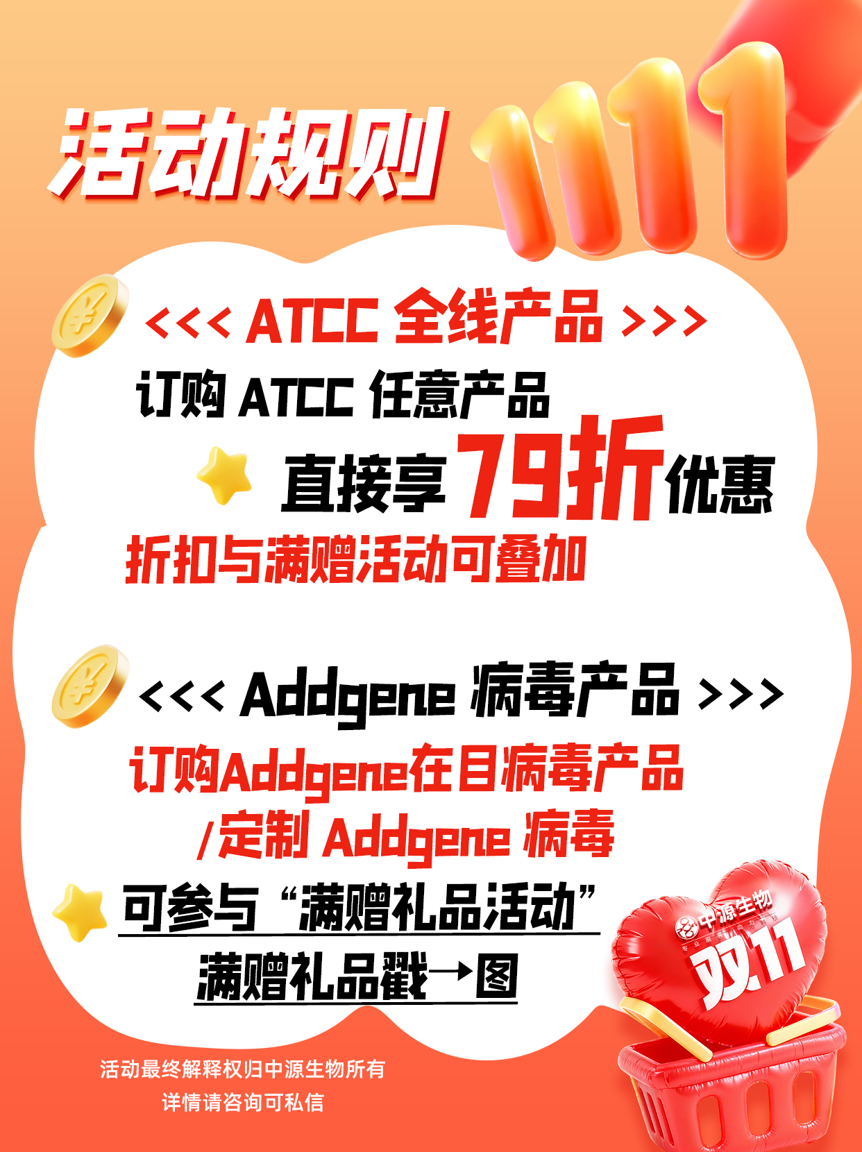 双11科研盛典:ATCC & Addgene折上享满赠,一单全搞定!