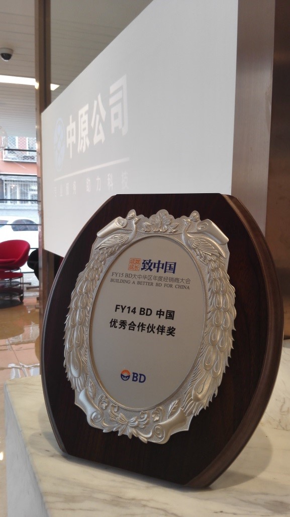 中原公司喜获美国BD公司FY14中国优秀合作伙伴奖