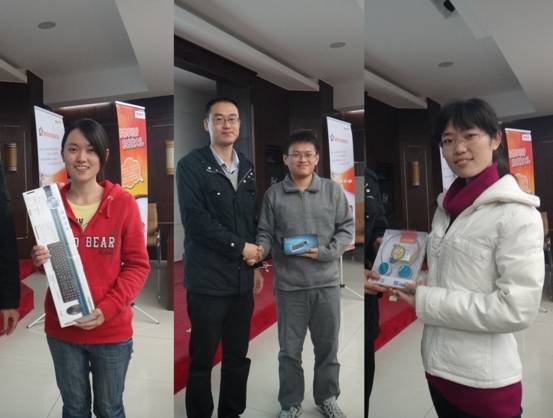 中原公司研究生交流论坛的一个重要环节,就是最激动人心的抽奖环节,除了每一位到场的老师和同学都能获得疯狂的小鸟一只外,9U(中国)一站式服务平台还现场抽取了3套疯狂小鸟公仔,迷你键鼠,无线音乐耳机和无线键鼠套装等共六个大奖,恭喜如下获得大奖的六位幸运儿: