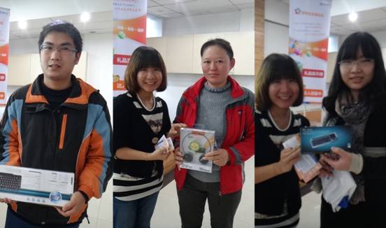 中原公司研究生交流论坛的一个重要环节,就是最激动人心的抽奖环节,除了每一位到场的老师和同学都能获得疯狂的小鸟一只外,9U(中国)一站式服务平台还现场抽取了三套愤怒小鸟公仔,迷你键鼠,无线音乐耳机和无线键鼠套装三个大奖,恭喜如下获得大奖的六位幸运儿