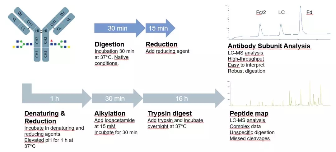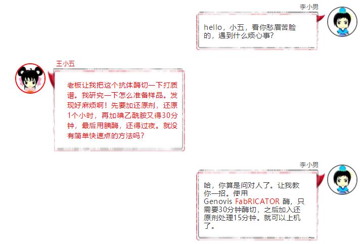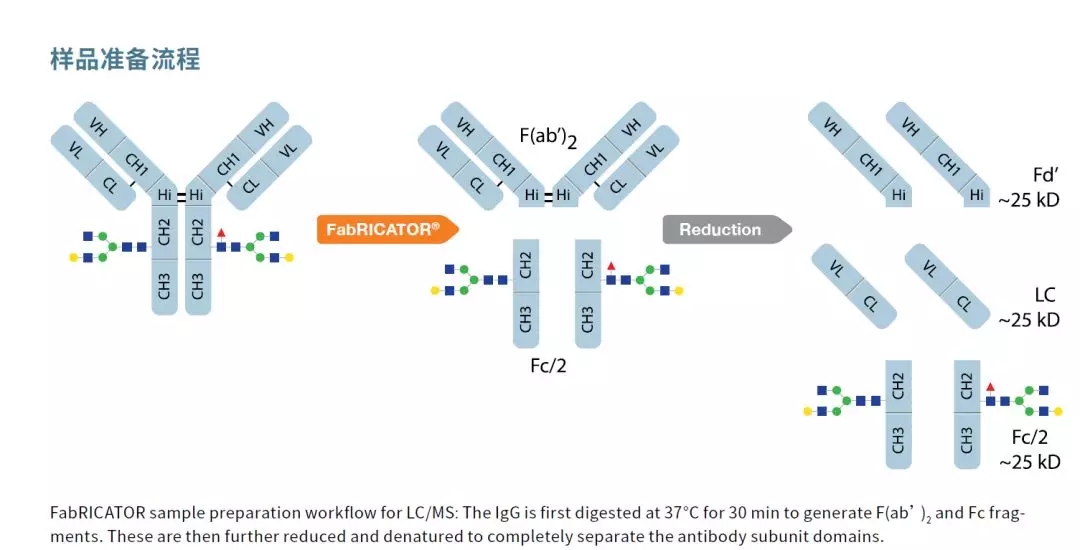 FabRICATOR® (IdeS) 是一种独特的半胱氨酸蛋白酶,在铰链区下方的一个单一氨基酸位点酶切IgG。仅需30分钟就可以完成酶切反应,而且不需要条件优化。