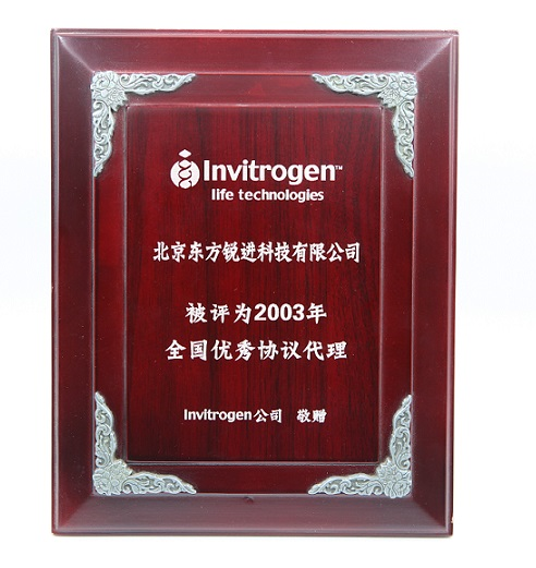 Invitrogen 2003 全国优秀协议代理