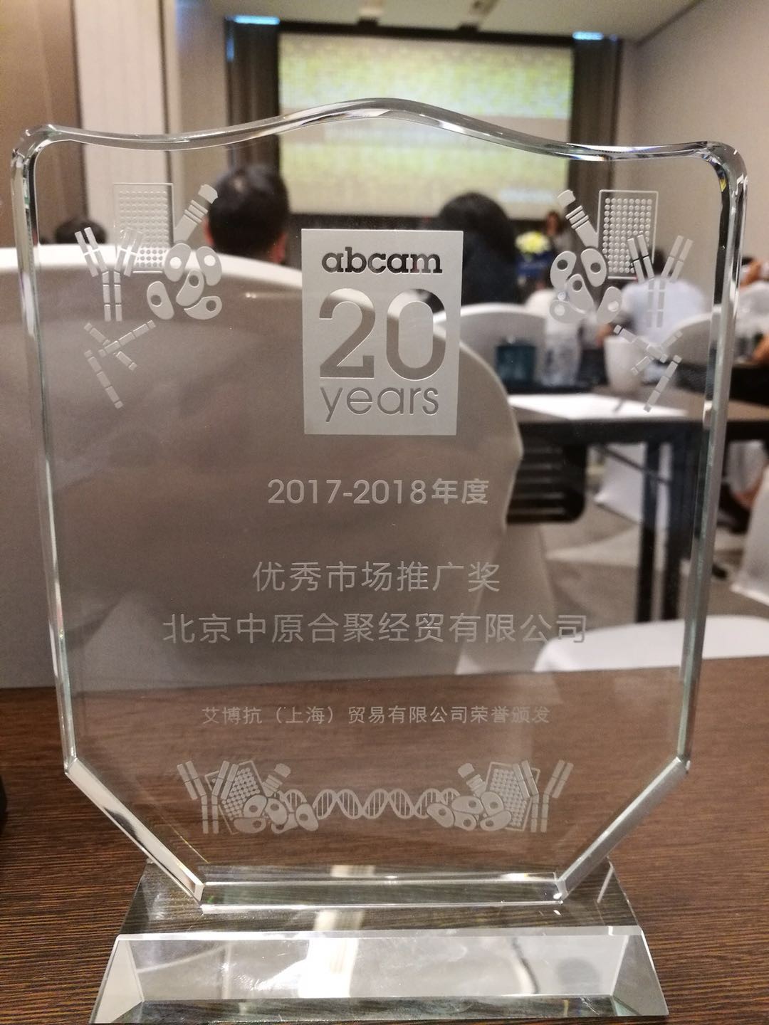 此次大会,Abcam共颁发了11个奖项,以感谢经销商伙伴在过去一年的陪伴和努力。因在市场上的突出贡献,中原公司被授予优秀市场推广奖。Abcam大力赞扬了中原的市场活动丰富多彩,网上宣传频繁多样,和配合Abcam做好各种市场活动的积极态度。最后,Abcam感谢中原公司一直以来对Abcam的大力支持,中原也将一如既往地与Abcam保持良好的合作关系,携手并进,合作共赢!