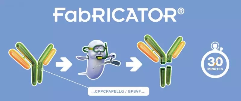 您还在为如何得到抗体亚基F(ab')2 和 Fc/2而发愁么?您还在使用木瓜蛋白酶,胃蛋白酶的方法来切割IgG抗体么?使用传统的IgG酶切方法需要不断反复的摸索酶切条件,同时酶切时间过长,位点切割特异性差,酶切过度或者酶切不完全的情况也着实让实验者烦忧,想想都心累,今天小编要为大家安利一款新的产品,来自瑞典Genovis公司的FabRICATOR蛋白酶。