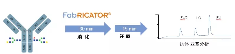FabRICATOR酶切后可产生精确的抗体亚基结构域。可分析亚基的赖氨酸剪切程度,确定亚基的氧化水平。可用于生物仿制药、单克隆抗体、抗体偶联药物、Fc融合蛋白等领域,在克隆选择、生产监控、质量控制、稳定性测试等环节发挥重要作用。