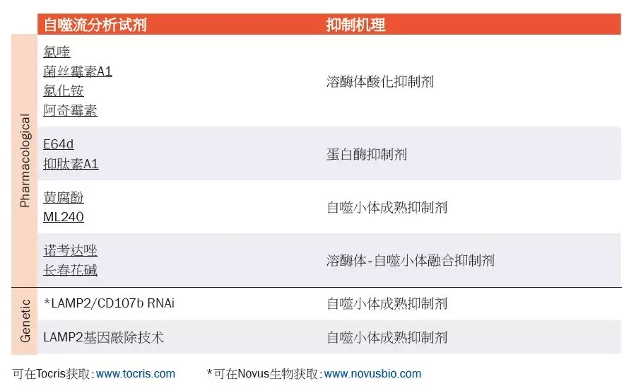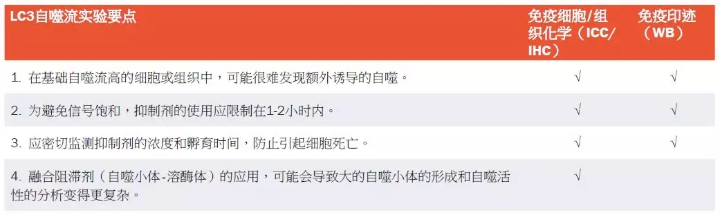 这一检测方法可以监测自噬小体的累积,以确定自噬流。用溶酶体药物和蛋白酶抑制剂可以阻断自噬流和LC3-II的降解。用有无这些试剂时LC3-II的数量差异来反映自噬流的变化。这一实验使研究人员能够区分真实的自噬诱导和自噬流的阻断。