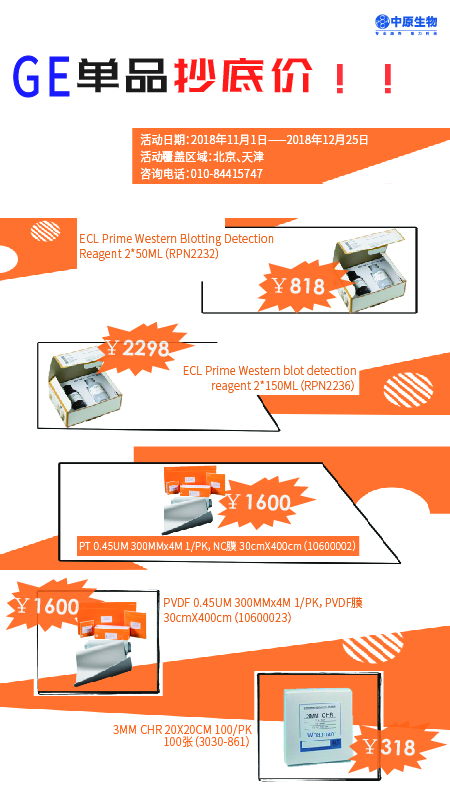 ECL显色液超低价818元,蛋白转印膜4米大包装仅需1600元,高品质的杂交滤纸只要318元。