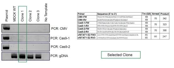 图3. STAT1-KO-MDCK 细胞无 Cas9/CMV 基因序列的整合。