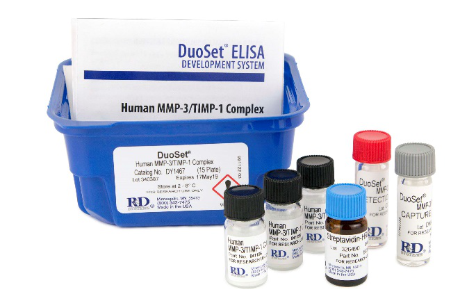 说起 DuoSet® 系列,其属于开发型 ELISA 试剂盒,适合动手能力强、经验丰富的 ELISA「资深玩家」,特别适用于在各种不同平台上进行免疫学实验开发设计,为研究者提供极为经济、灵活、快捷的方案。DuoSet® ELISA 试剂盒的组分包括:捕获抗体、生物素化检测抗体、校正的蛋白标准品、链霉亲和素偶联的辣根过氧化物酶(Streptavidin-HRP)。