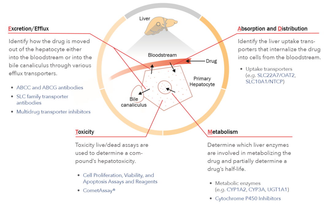 图 1 在原代肝细胞中进行药物/化合物的吸收、分配、代谢、排除以及毒性(ADME/TOX)的研究,对于评估药物安全及药代动力学至关重要。
