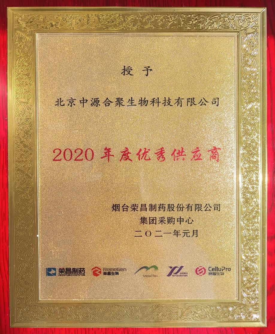 荣昌制药“2020 年度优秀供应商”称号