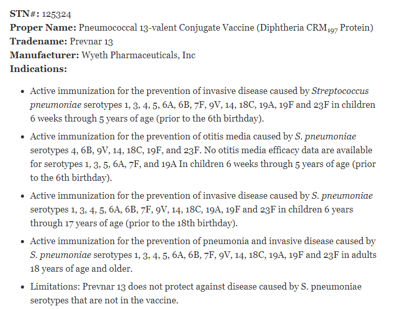 美国FDA官网PCV13信息,图片来自网络