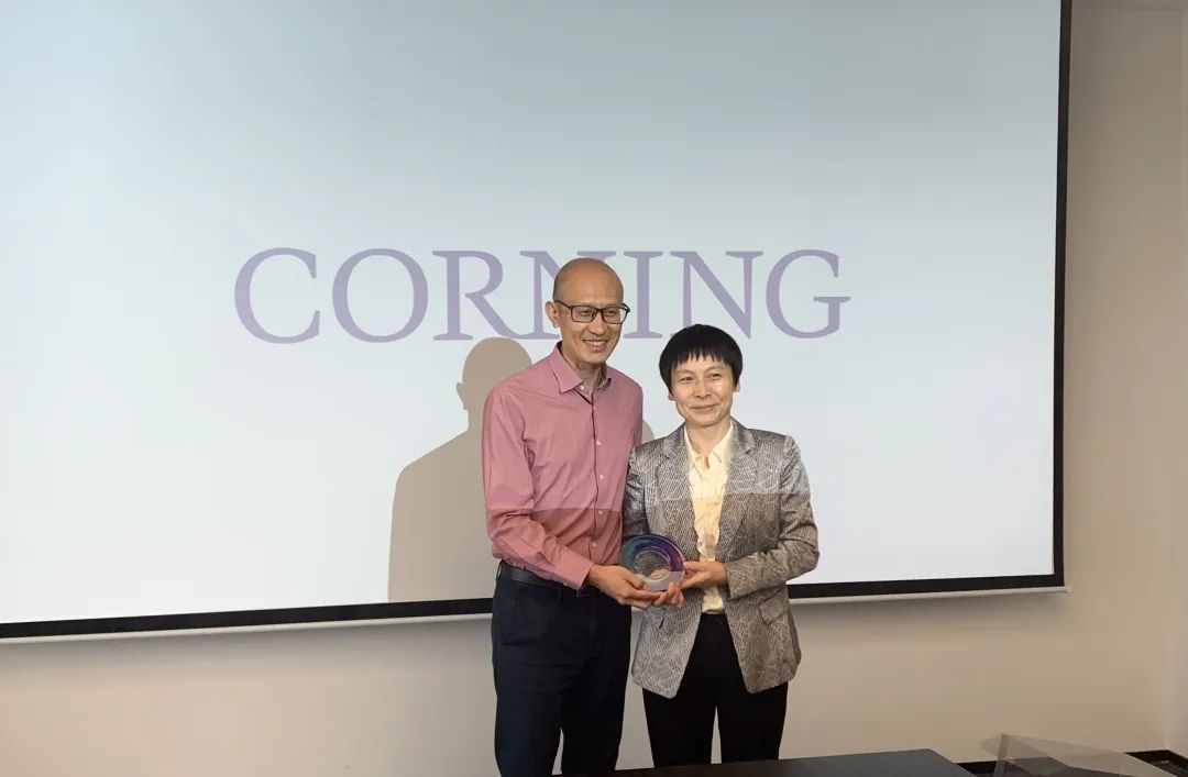 中源公司进出口二部丁亚丹(右)获康宁公司业务突出奖