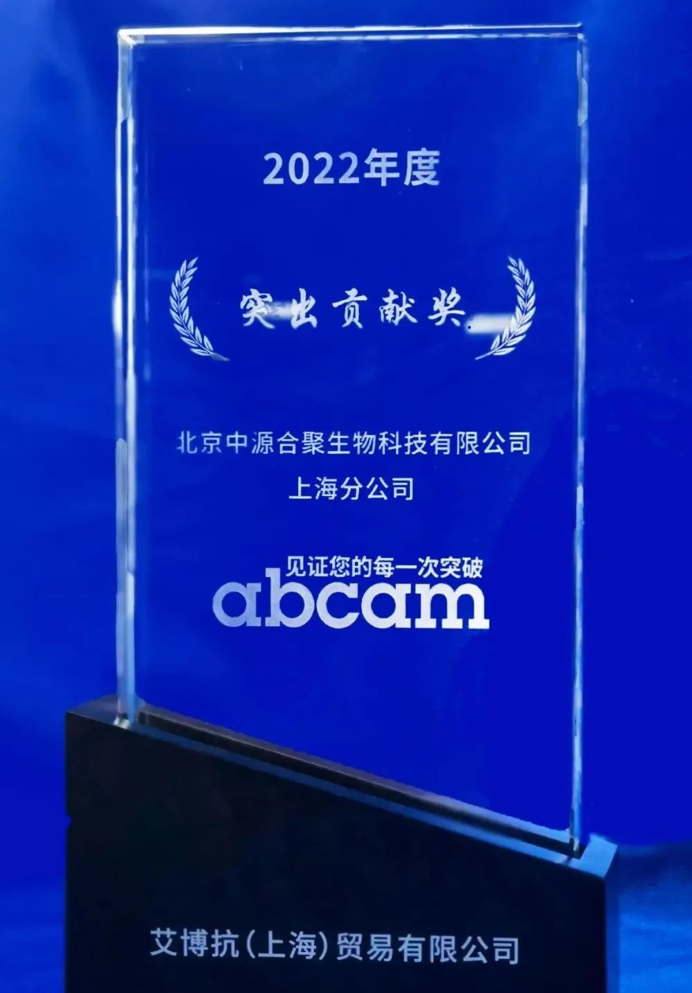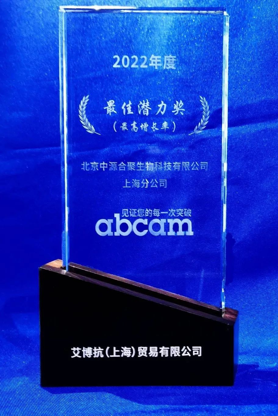 喜讯 | 中源上海分公司获得2022年度Abcam突出贡献奖和最佳潜力奖(最高增长率)