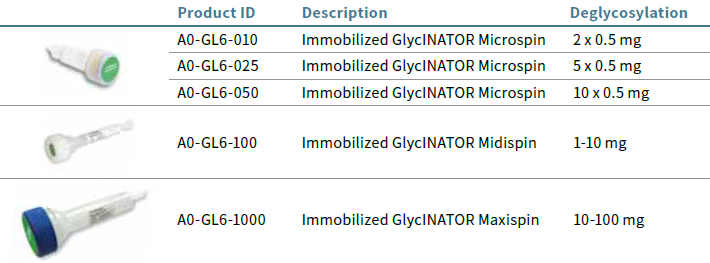 固定化的GlycINATOR离心柱,GlycINATOR酶通过共价结合在琼脂糖小球上。这种固定化的GlycINATOR可以对Fc的N-聚糖去糖基化,而最终产品中不会含有这种酶。
