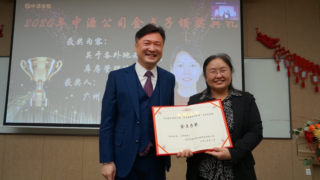 Mr. Xiaoyong Zhu, the Vice President of Zhongyuan, awarded the “Annual Golden Idea Awards” (collected by Tong Li, the Business General Manager as of COVID-19)