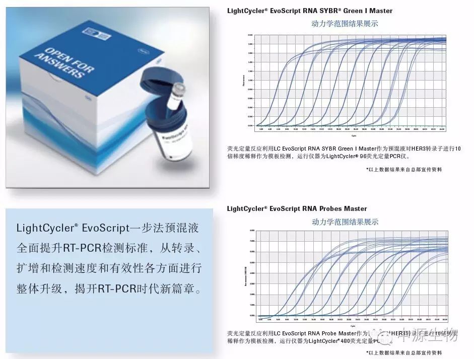 √ 罗氏新一代 EvoScript 预混液, 一个酶完成反转录和荧光定量检测两步实验;